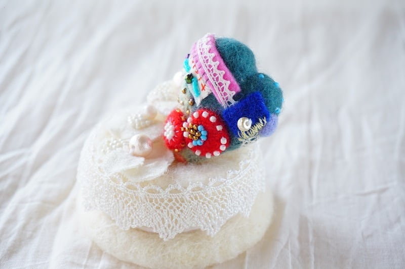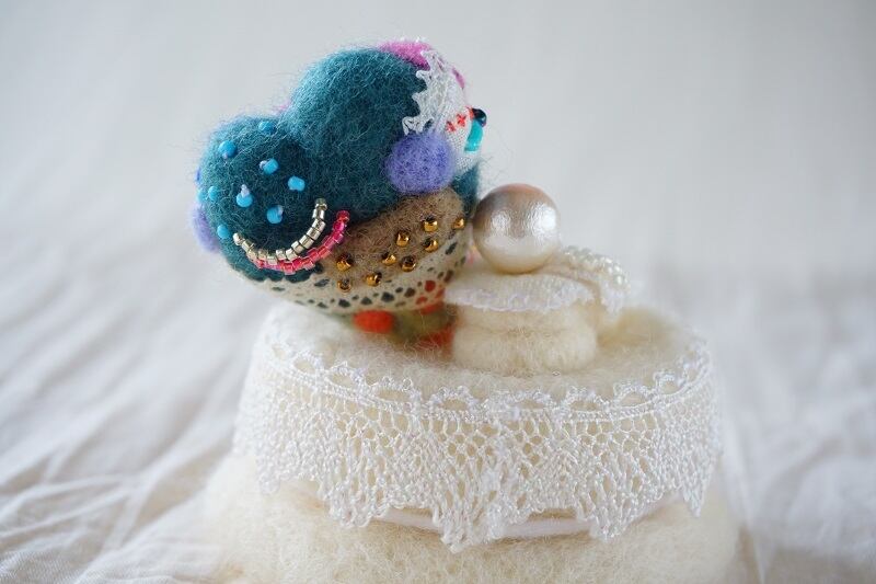 羊毛フェルトとビーズで出来たハートの置物6/6